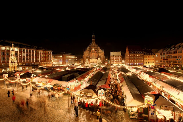 Do you remember my post about my sister's birthday ? My present for her was that we're going to Nuremberg to the Christmas market and this is where we're going today! I've taken a day off on monday to be able to show her the city as well. So we're taking the train and checking in at the hotel and going straight into the city to have a Glühwein (hot spiced wine) and Nuremberger sausages. I like these wooden huts they have where they sell Christmas ornaments, gingerbreads and many other things.